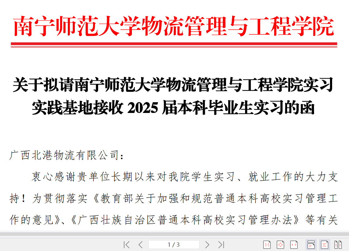 为贯彻落实《教育部关于加强和规范普通本科高校实习管理工作的意见》、《广西壮族自治区普通本科高校实习管理办法》等有关学生毕业实习的文件精神,根据《南宁师范大学普通高等教育实习教学工作管理规定》有关要求,为切实做好必威西汉姆联2025届本科毕业生实习工作,加强协同育人、产教融合。必威西汉姆联通过向广大物流企业诚邀提供实习岗位给我院2025届毕业学生,学生通过与企业双向选择应聘上岗,按集中实习或分散实习的方式完成专业实习。